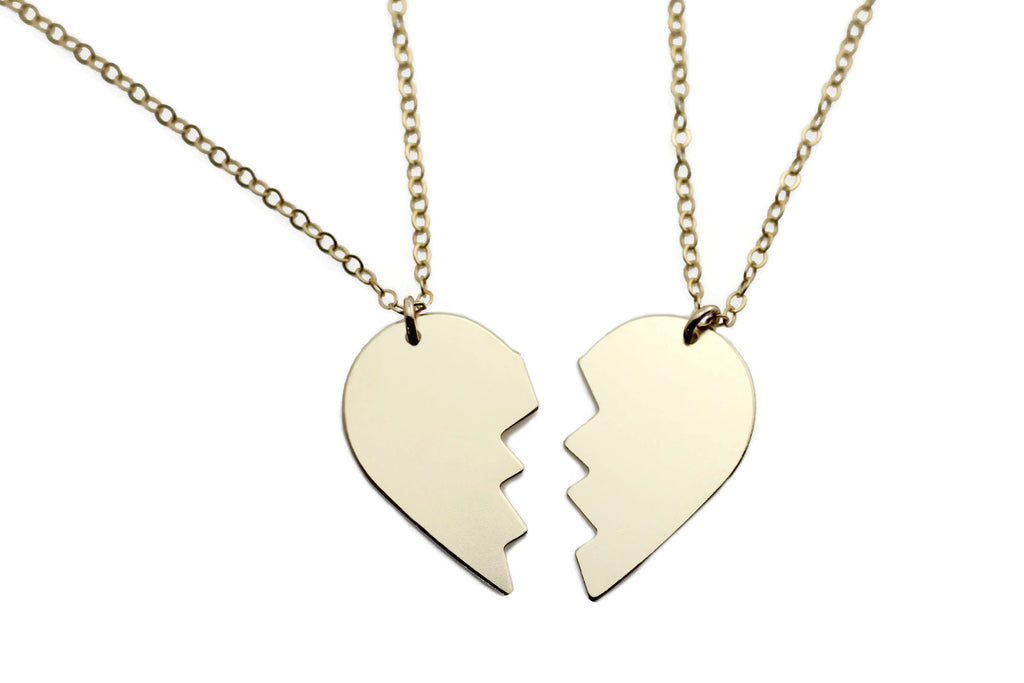 So cute 14K Gold Filled Split Hearts suspended on a beautiful 14K Gold Filled 2mmx1.6mm Flat Cable Chain. You get 2 necklaces, choose your layout and your inscription!
